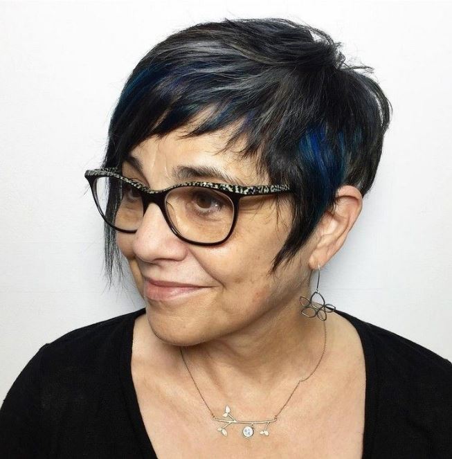 Les pixies cut pour les femmes de 60 ans avec des lunettes