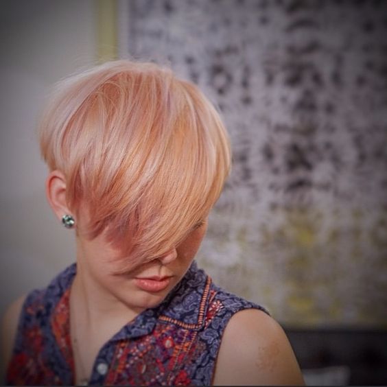 Une jolie couleur chaude comme le rose pastel sur une coupe pixie suffit à ajouter de l’éclat à votre chevelure qui manque de volume.