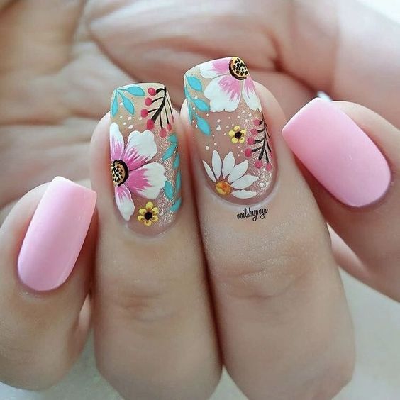 Faites de vos ongles une toile printanière en y portant une manucure au motif champ de fleurs.