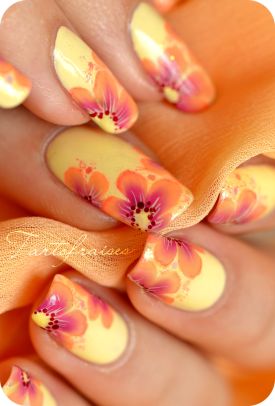 Le Nail art fleur de tiaré sur fond jaune apporte une touche exotique à votre manucure.