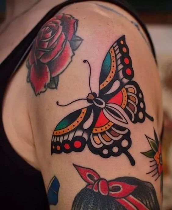 Le tatouage papillon réalisé dans un style old-school peut être tout aussi captivant. Adoptez-le !