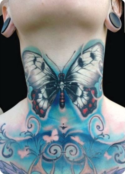 Un magnifique tatouage de papillon en 3D sur le cou !