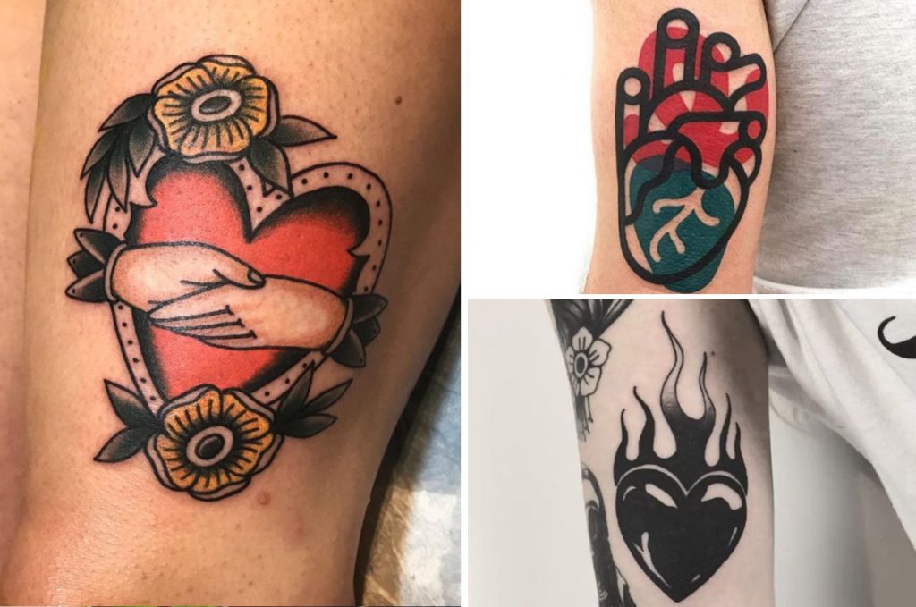 Comme sur ce modèle, n’hésitez pas à jouer sur le côté réaliste du motif cœur en vous faisant tatouer l’organe et en y ajoutant des motifs graphiques. Le rendu est stupéfiant !