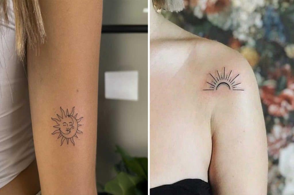 Succombez au charme de ce duo de tatouage de soleil et lune croissante à adopter entre sœur !