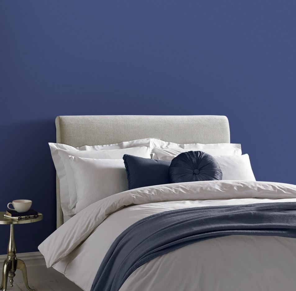 Vous peignez un mur indigo et de préférence celui qui assoit votre lit ou vous disposez cette teinte à travers un couvre-lit ou une housse de couette bleu indigo. Vous associez cette teinte à un blanc, une teinte sable ou une couleur pastel pour mettre un peu de gaieté à l’ensemble.