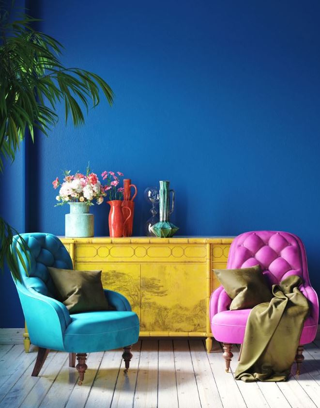 Le bleu roi, malgré son caractère est assez simple à harmoniser avec de nombreuses couleurs.