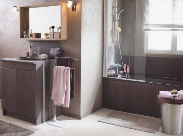 Le bleu et le blanc dans la salle de bain vous semble trop classique et vous vous êtes lassé. En mixant du taupe et une autre teinte ou une matière comme du bois, vous lui apportez beaucoup de douceur, une certaine élégance et un aspect qui n’est ni triste ni froid. De plus, cette teinte évoquant le milieu naturel, elle se marie avec des matériaux naturels et quelques plantes pour faire souffler un vent de fraîcheur dans cette pièce. Elle peut parfaitement orner tous les murs de cette pièce ou être limitée aux carrelages par exemple.