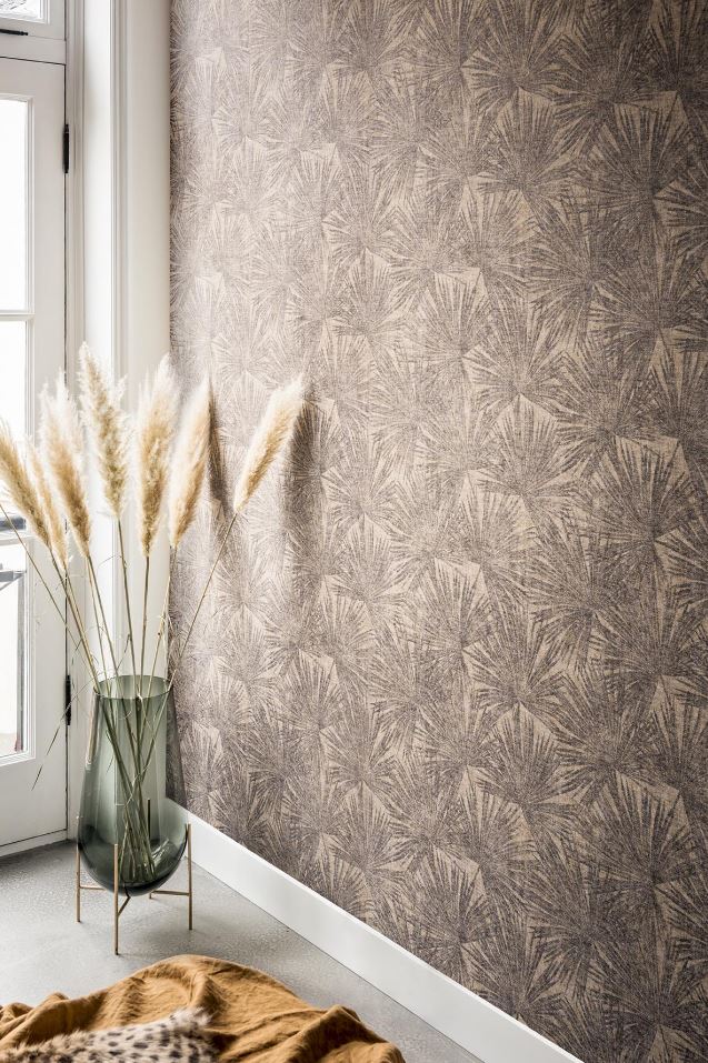 Les grandes feuilles de palmes ornent ce papier peint au fond taupe texturé. Vous l’aimerez pour son côté exotique, vous permettant de décorer une chambre ou le séjour, sans tomber dans l’exubérance grâce à ce ton neutre.