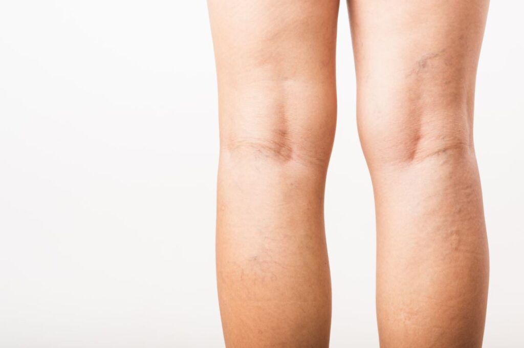 Au début de la maladie, les altérations visibles sont situées derrière le genou. On distingue une veine apparente, une petite veine bleue ou verte, ou des petits paquets de vaisseaux.