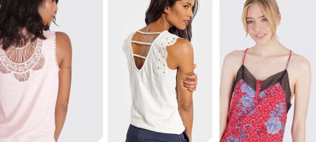 Vous devez absolument mettre votre buste en valeur avec un top adapté. Afin de minimiser votre carrure, vous opterez pour des hauts de couleurs sombres, plutôt unis et en matière fluide. Les pièces devront être féminines avec pourquoi pas un décolleté. Vous choisirez votre top avec des bretelles épaisses.